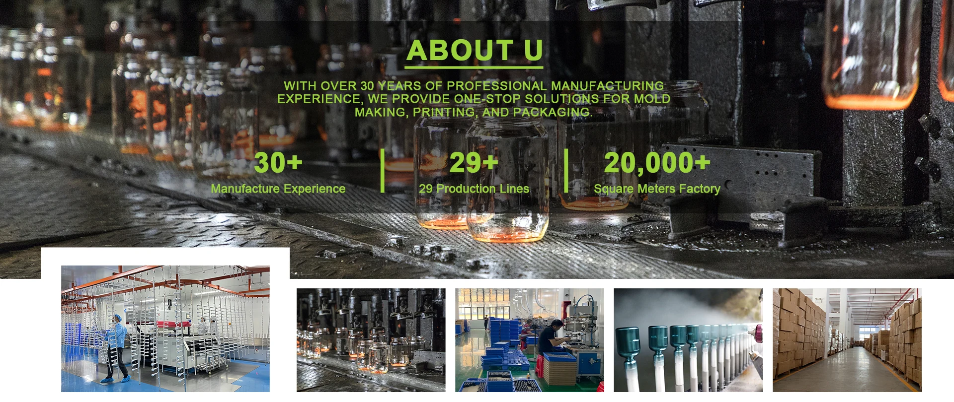 Productos principales:Botella de vidrio, botella de perfume, botella de suero, botella de esmalte de uรฑas, botella de lociรณn